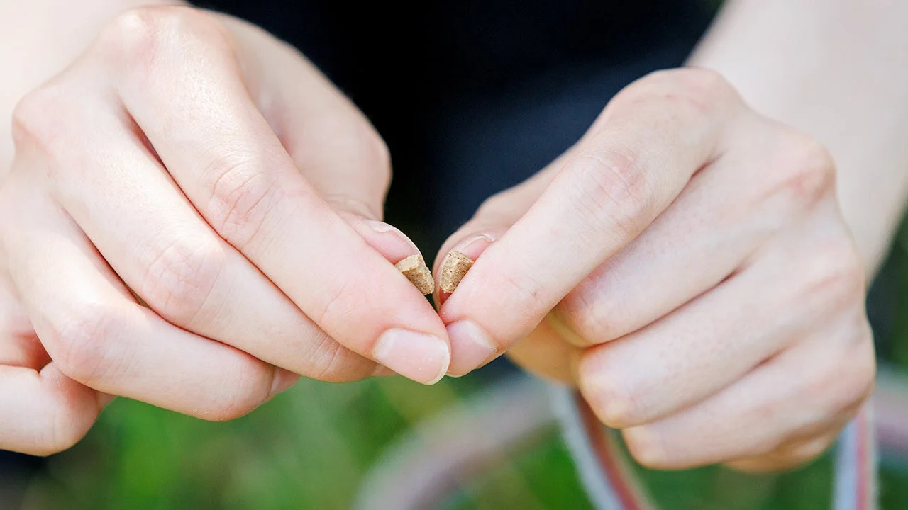 褒めたタイミングで与える「ご褒美」として機能するように設計されており、日常の食事とトレーニングを一体化できる画期的なフードなのです。特別なおやつを用意する必要がなく、以下の特徴がしつけをスムーズにしてくれます。